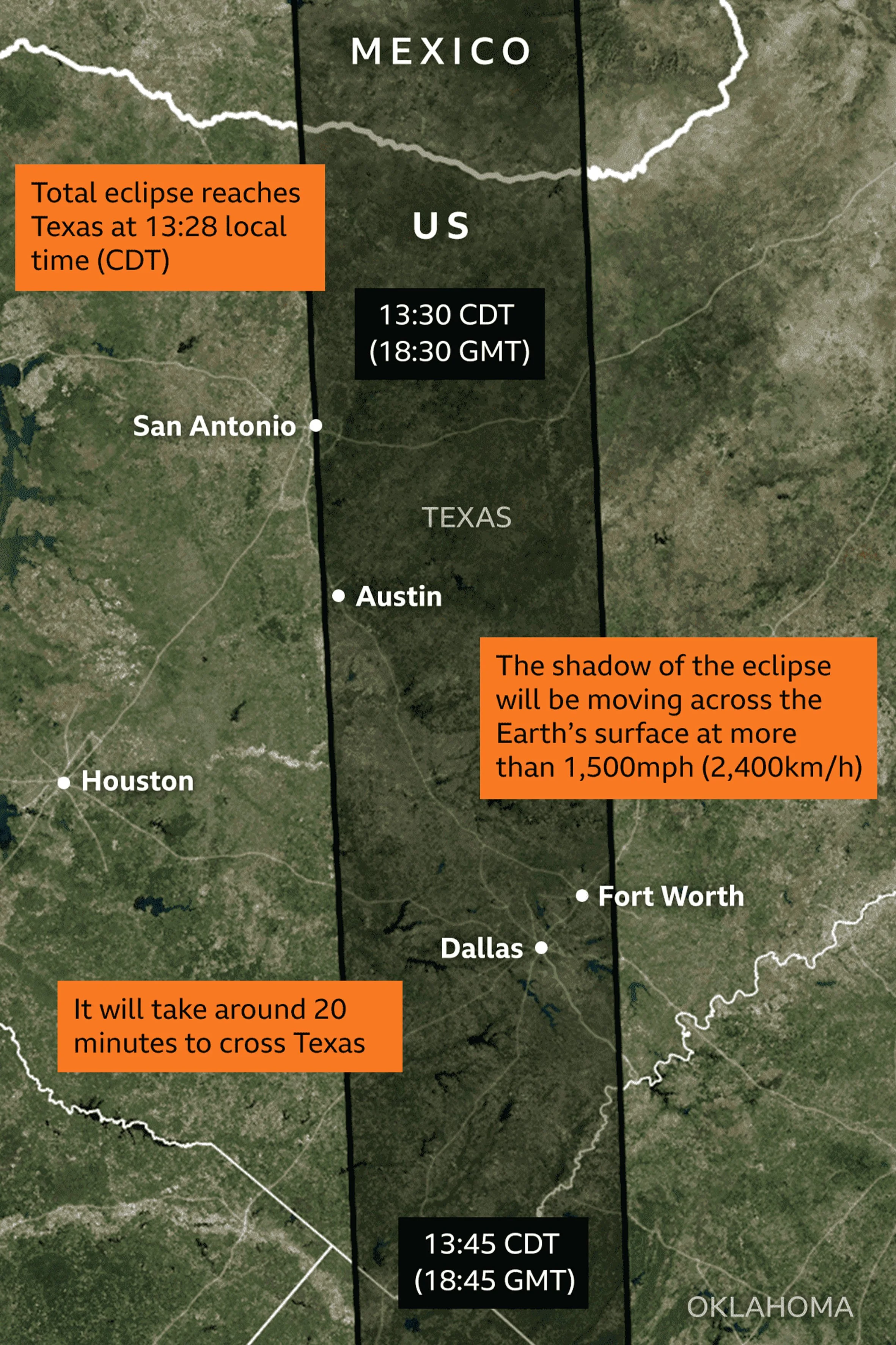 Solar eclipse: Path of darkness - scroll every mile of totality